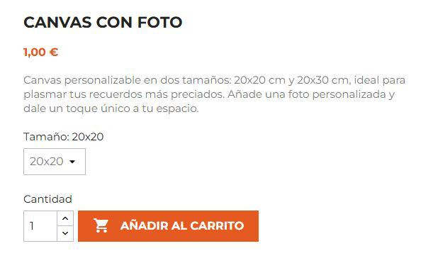 Lienzos y decoración de pared: Los clientes pueden subir una imagen para que se imprima en un lienzo, un cuadro, un póster, etc. Ver ejemplo.