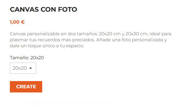 Lienzos y decoración de pared: Los clientes pueden subir una imagen para que se imprima en un lienzo, un cuadro, un póster, etc. Ver ejemplo.